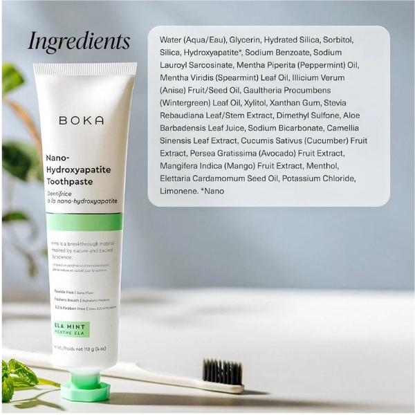 Boka Fluoride-Free Toothpaste – Nano Hydroxyapatite Toothpaste for Sensitive Teeth, Ela Mint Flavor