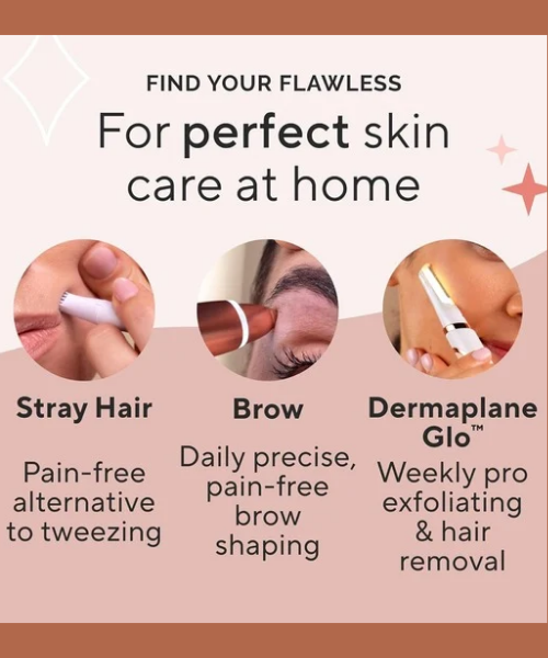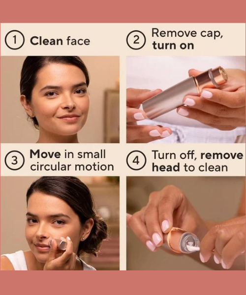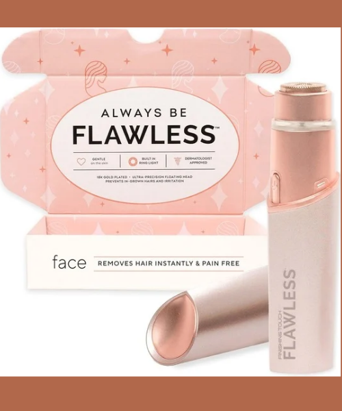The Finishing Touch Flawless Facial Hair Remover is a gentle, painless electric razor designed to instantly remove peach fuzz and unwanted facial hair with precision. Its sleek rose-gold design and built-in LED light help you target even the finest hairs for a smooth, flawless finish. Perfect for daily use, this device is safe for all skin types and leaves no redness or irritation.