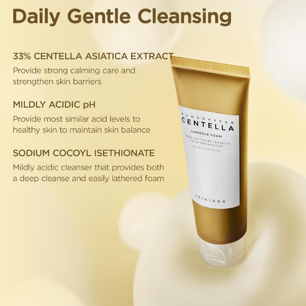Cleanse and refresh your skin with the SKIN1004 Madagascar Centella Ampoule Foam, a mild Korean facial cleanser enriched with Centella Asiatica extract from Madagascar. This soft, foamy formula effectively removes dirt, oil, and makeup without stripping moisture, leaving your skin clean, smooth, and hydrated.